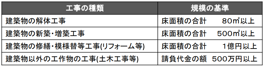 実施する発注者および施工者は、所在地の都道府県に届け出る必要があります。適切な届出をおこなわなかった場合は、法律違反として罰則が科されます。
